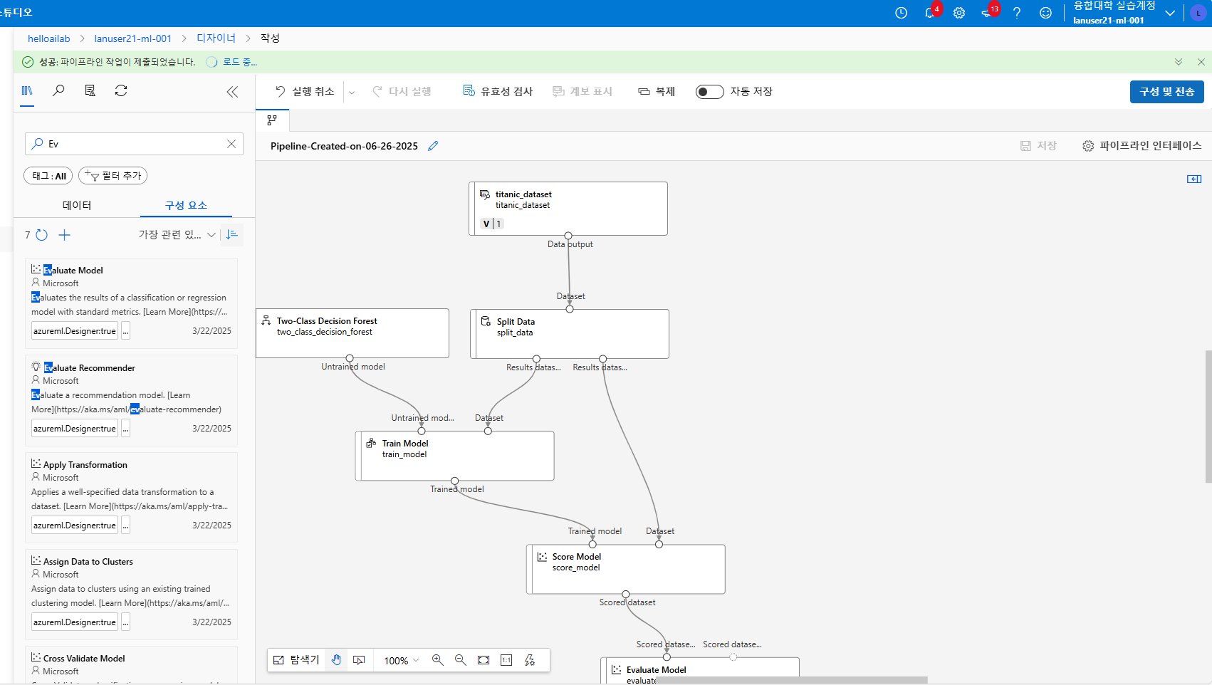 | Azure Machine Learning - AutoML로 타이타닉 생존자 예측하기 (0) | 2025.07.04 |